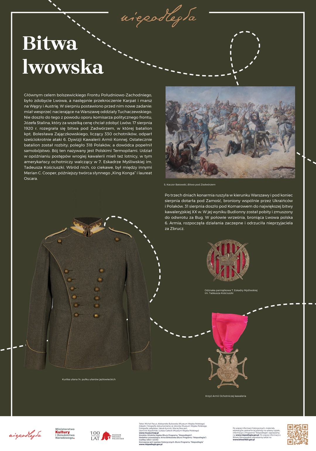 Biuro Programu „Niepodległa” we współpracy z Muzeum Wojska Polskiego przygotowało bezpłatną wystawę poświęconą tematyce wojny polsko-bolszewickiej: „Bitwa Warszawska. Stulecie zwycięstwa”.