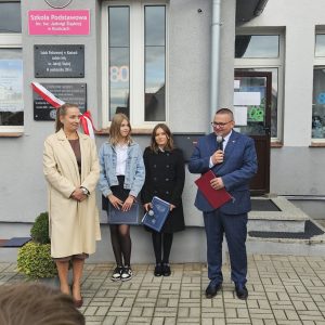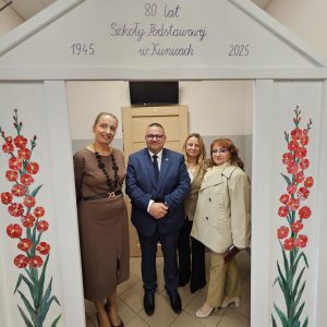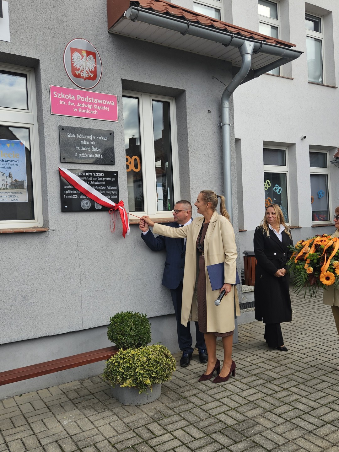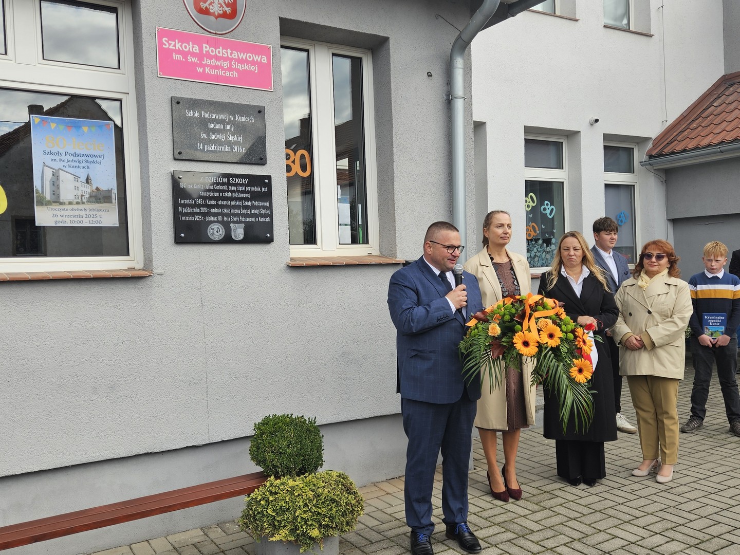 W piątek 26.09.2025r. odbyły się uroczyste obchody 80-lecia istnienia Szkoły Podstawowej im. św. Jadwigi Śląskiej w Kunicach. Było to wyjątkowe wydarzenie, które zgromadziło uczniów, absolwentów, nauczycieli – zarówno obecnych, jak i emerytowanych – a także licznych gości. Udział wzięli również przedstawiciele władz lokalnych Wójt Gminy Kunice Krzysztof Błądziński, Sekretarz Małgorzata Maziarz oraz Skarbnik Monika Szperna.