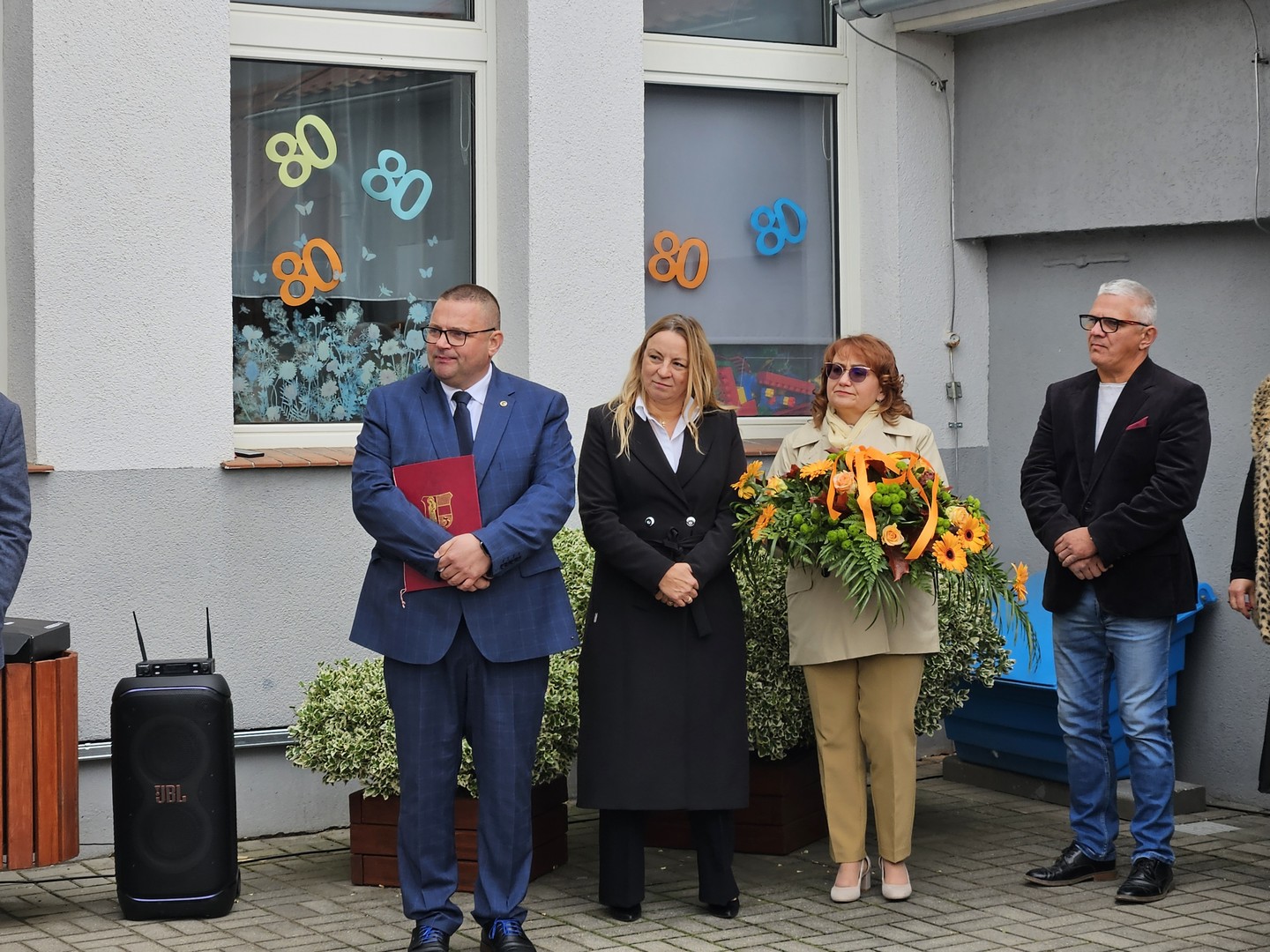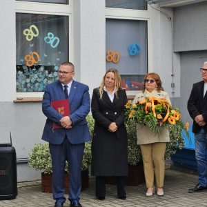 Głównym punktem spotkania było uroczyste odsłonięcie pamiątkowej tablicy, upamiętniającej osiem dekad działalności szkoły. Tablica nie tylko symbolizuje 80 lat historii placówki, ale również zawiera daty najważniejszych wydarzeń z życia szkoły tych, które na zawsze zapisały się w naszej pamięci i kształtowały oblicze dzisiejszej szkoły.