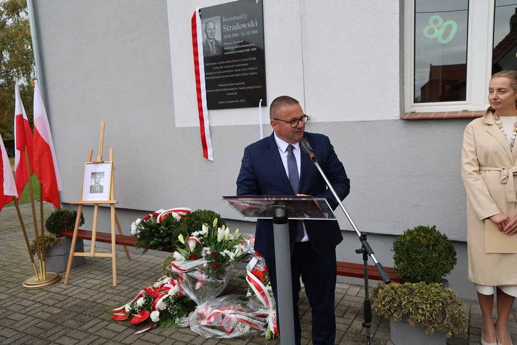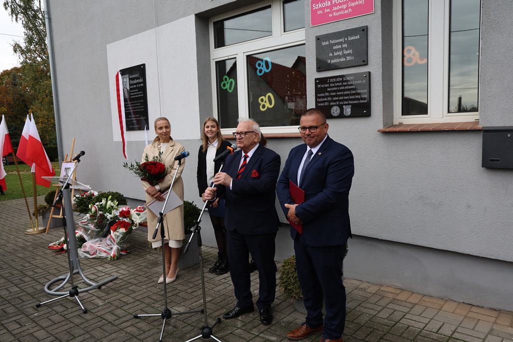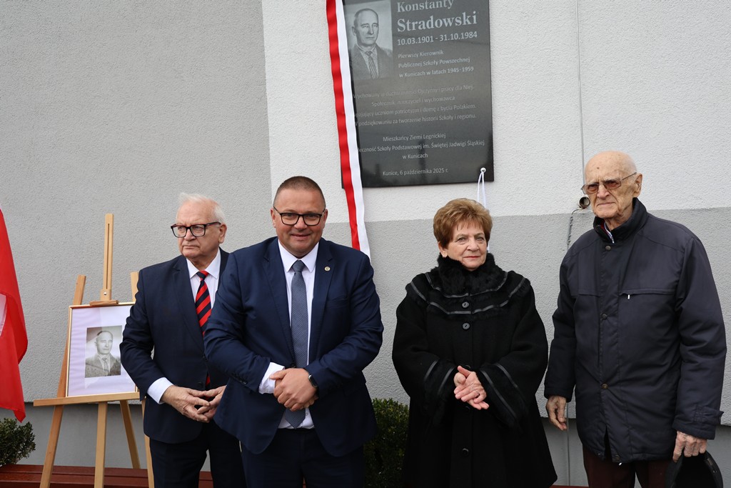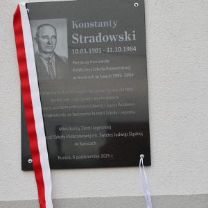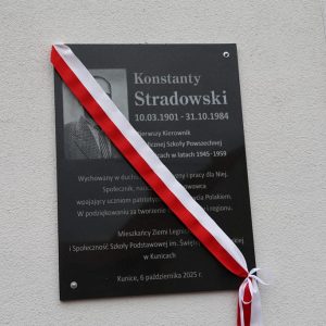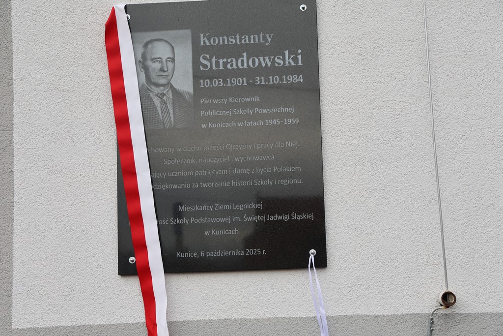 Z tej okazji w Szkole Podstawowej im. Św. Jadwigi Śląskiej w Kunicach odbyła się uroczystość poświęcona pamięci pierwszego kierownika szkoły – Konstantego Stradowskiego. Podczas wydarzenia odsłonięto pamiątkową tablicę, upamiętniającą jego zasługi w tworzeniu i rozwijaniu placówki, która przez lata była i pozostaje ważnym miejscem na edukacyjnej mapie naszej gminy.