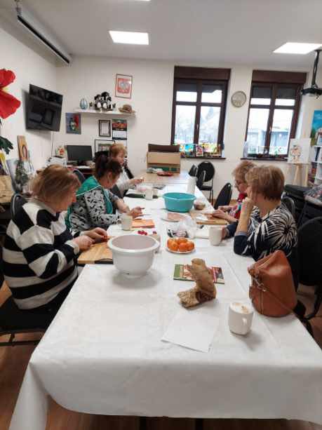 Podczas zajęć plastycznych nasi Seniorzy z zaangażowaniem tworzyli piękną biżuterię z filcu, rozwijając swoje pasje i zdolności manualne.