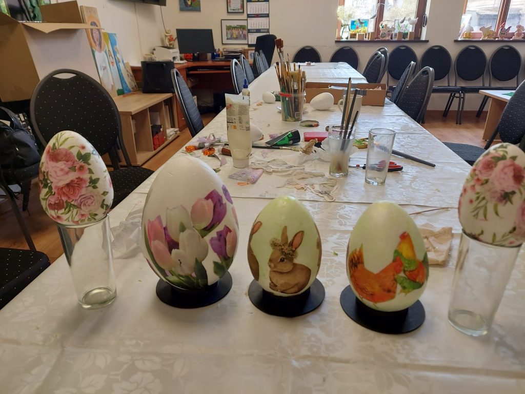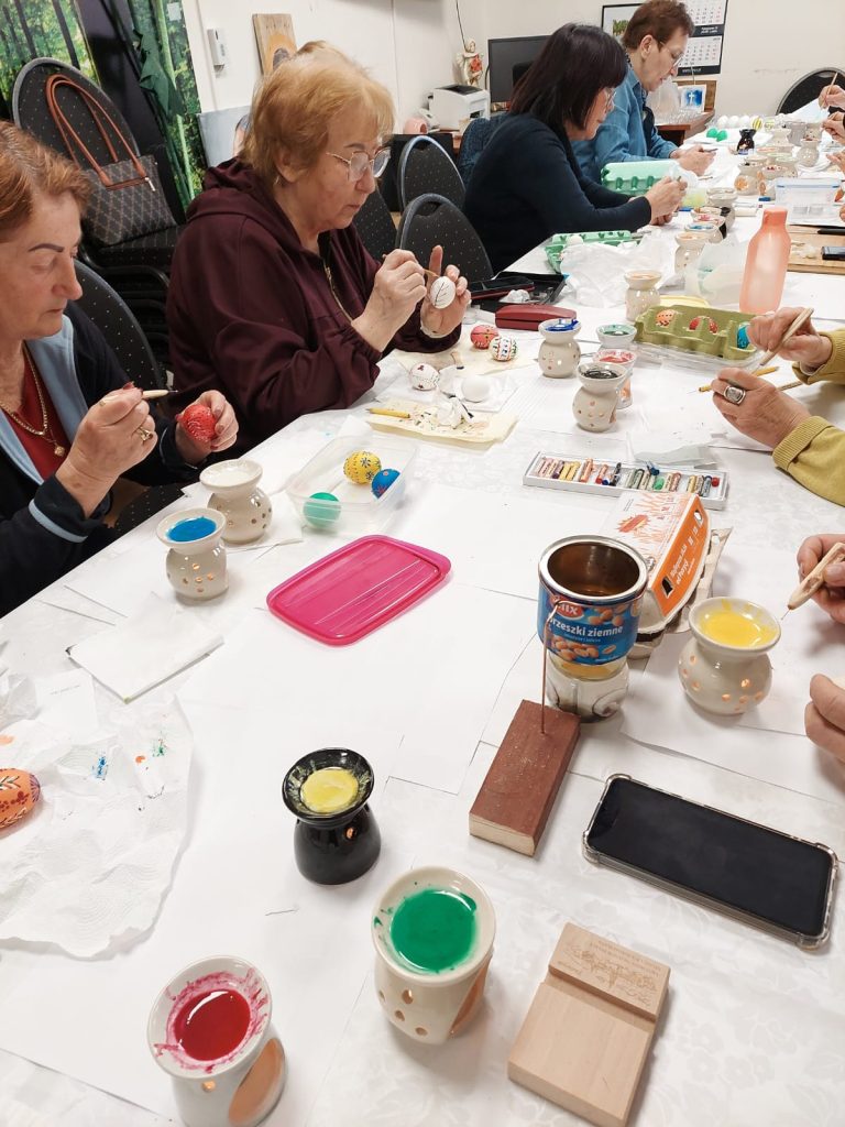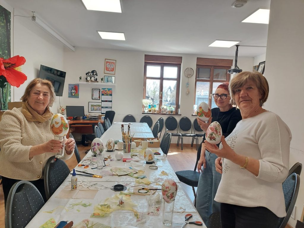 Seniorzy z ogromnym zaangażowaniem tworzyli piękne dekoracje świąteczne techniką decoupage, które wprowadziły do naszych wnętrz wyjątkowy, wiosenny klimat 🌸