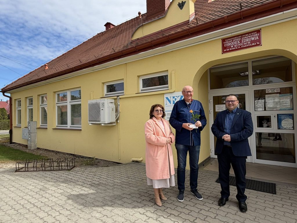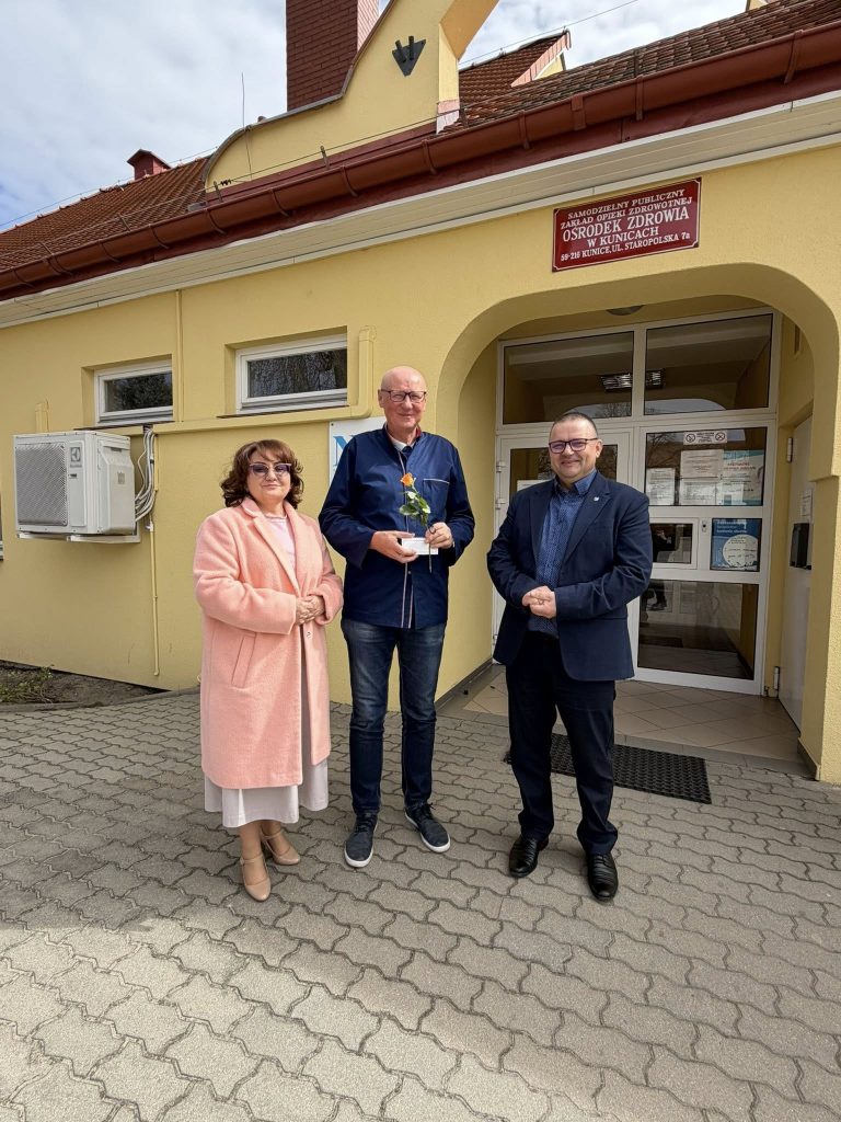 Dziś Wójt Gminy Kunice Krzysztof Błądziński wraz z Sekretarz Gminy Kunice Małgorzatą Maziarz odwiedzili Ośrodek Zdrowia w Kunicach, aby osobiście wyrazić wdzięczność lekarzom, pielęgniarkom oraz całemu personelowi medycznemu za ich codzienną pracę na rzecz mieszkańców naszej gminy