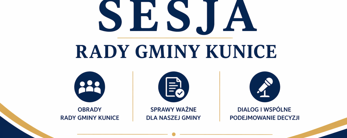 Na podstawie art. 20 ust. 3 ustawy z dnia 8 marca 1990 r. o samorządzie gminnym zwołuję na dzień 30 kwietnia 2026 r. (czwartek) na godz. 8.00 sesję Rady Gminy Kunice. Sesja odbędzie się w sali narad urzędu gminy  w Kunicach. Informuję, że sesje Rady Gminy są transmitowane za pośrednictwem systemu transmisji obrad.